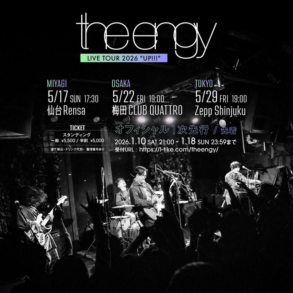 the engy LIVE TOUR 2026"UP!!!" オフィシャル一次先行チケット販売開始❗️ News the engy official site 2026/01/10 21:00 フォロー the engy LIVE TOUR 2026"UP!!!" オフィシャル一次先行チケット販売開始❗️ https://l-tike.com/theengy/ URLをコピーする 報告する